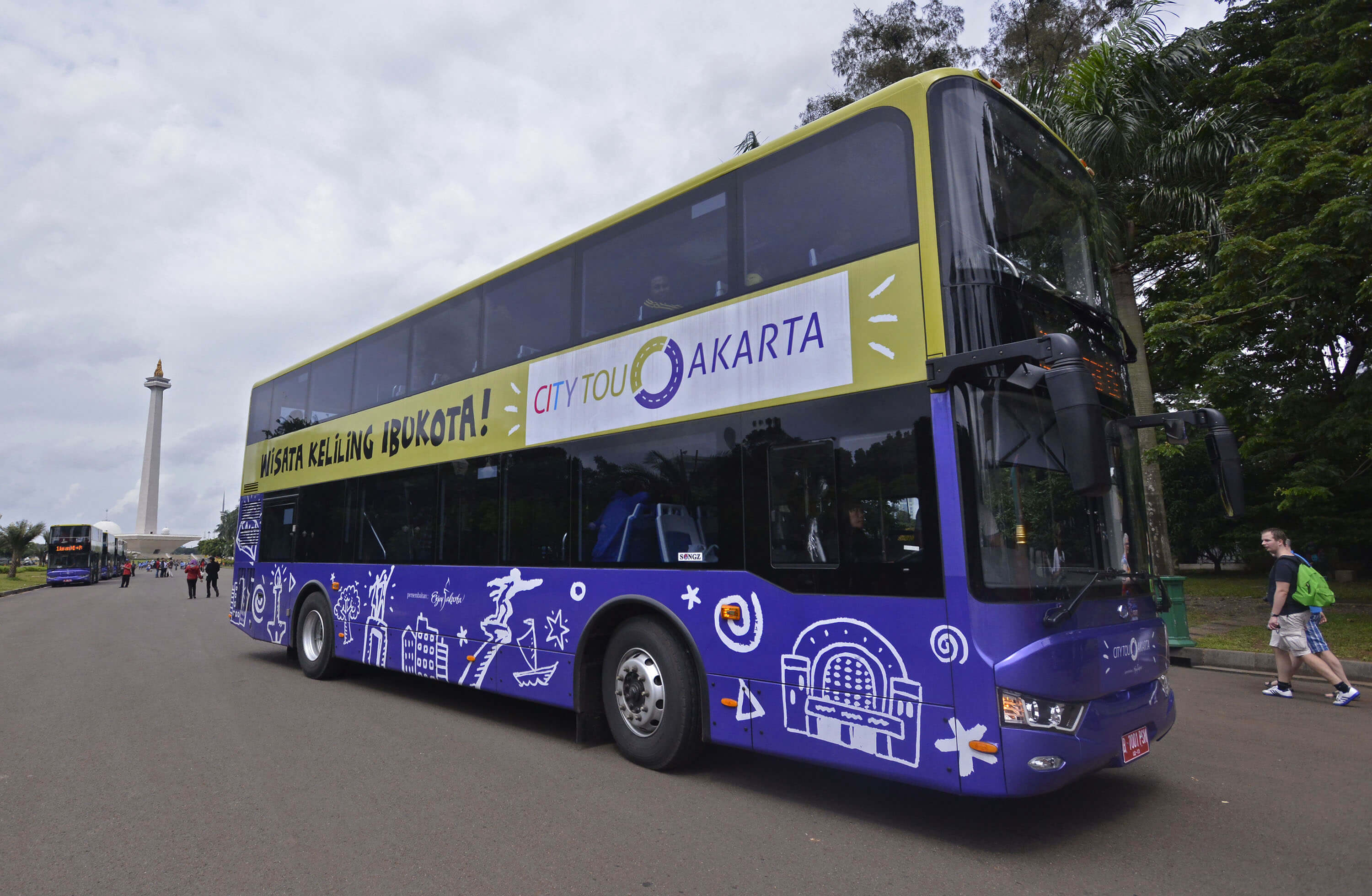 Bus Wisata Jakarta berangkat dari Monas, Jakarta Pusat, Senin (24/2).